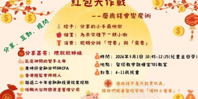 主日學是為會衆在成長過程中教授有關聖經、基督教信仰和生活應用的知識,其中包括聖經真理和基督教的愛。主日學以普通話進行,學生可以學習聖經故事、教義、道德教育、禱告和敬拜等方面的內容。